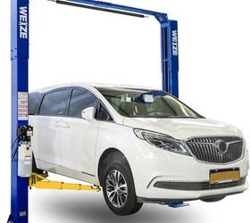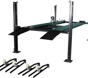 As a mid-rise hoist, it can bear 6,600 lbs of automobile weight, has rubber-coated lifting arms, and can be locked into one of six lift heights ranging from about two to four feet. It is powered by a simple 110V outlet and spans roughly 7.5 ft in length, meaning it should fit neatly in just about any American household attached garage.